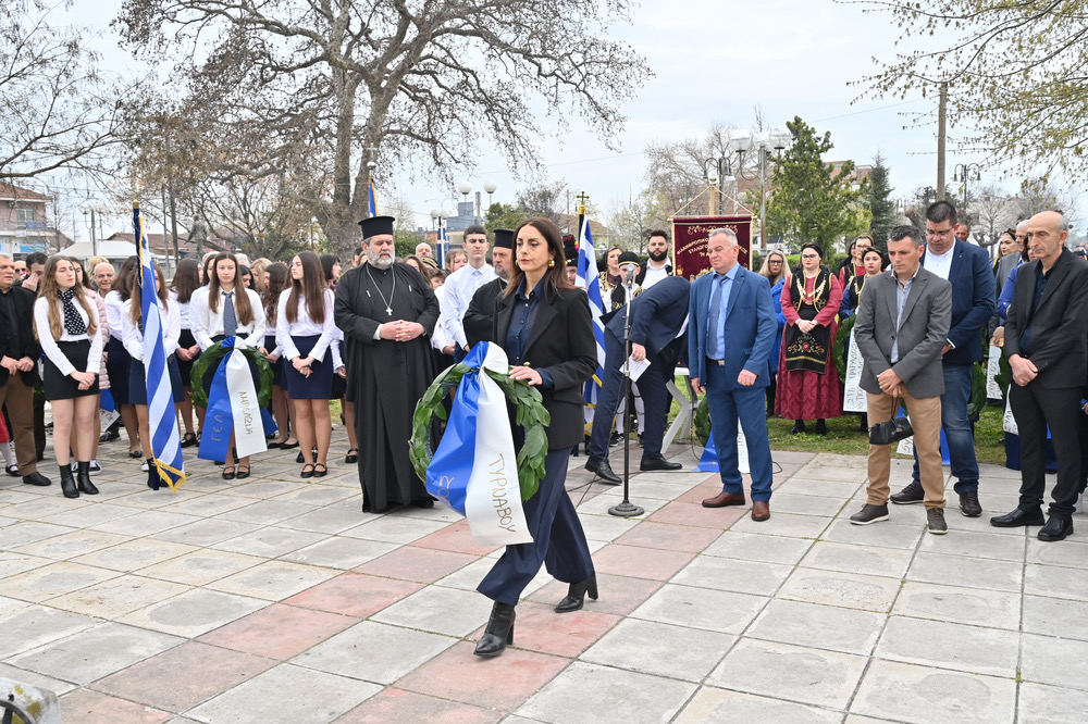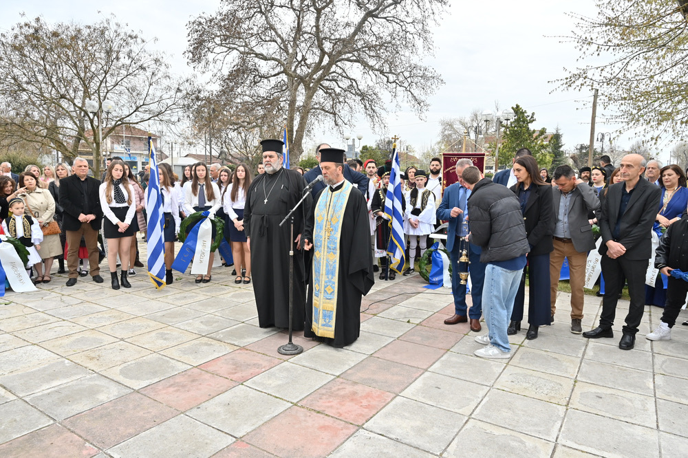 Στη συνέχεια, πραγματοποιήθηκε η επιμνημόσυνη δέηση στο Μνημείο Ηρώων, όπου τοπικοί φορείς και μαθητές κατέθεσαν στεφάνια στη μνήμη εκείνων που αγωνίστηκαν για την πατρίδα. Η στιγμή κορυφώθηκε με την τήρηση ενός λεπτού σιγής προς τιμήν των πεσόντων και την ανάκρουση του Εθνικού Ύμνου.