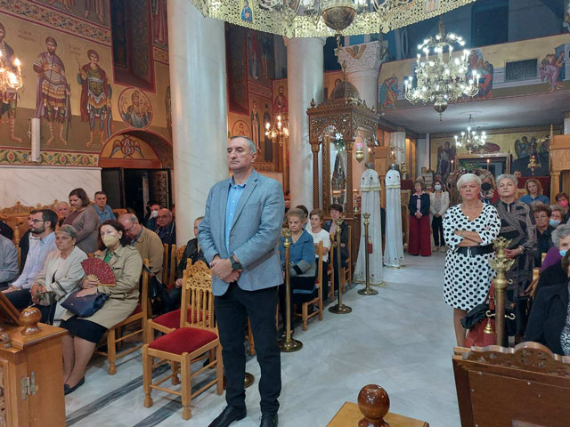 Παρουσία του Δημάρχου Τυρνάβου κ Ιωάννη Κόκουρα τελέστηκε το απόγευμα της Τρίτης 25 Οκτωβρίου ο Μέγας Πανηγυρικός Εσπερινός μετά Αρτοκλασίας και η Λιτάνευση της εικόνας του Αγίου Δημητρίου του Μυροβλήτου στον ομώνυμο Ναό από τον πάτερ Ιωάννη.