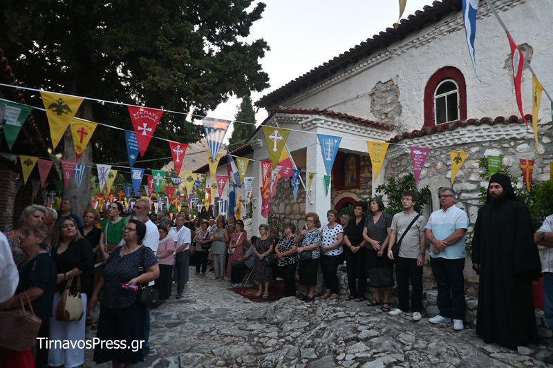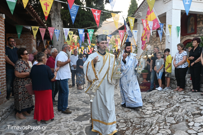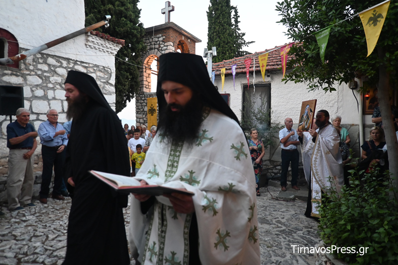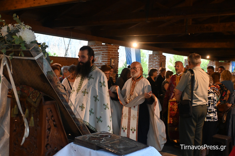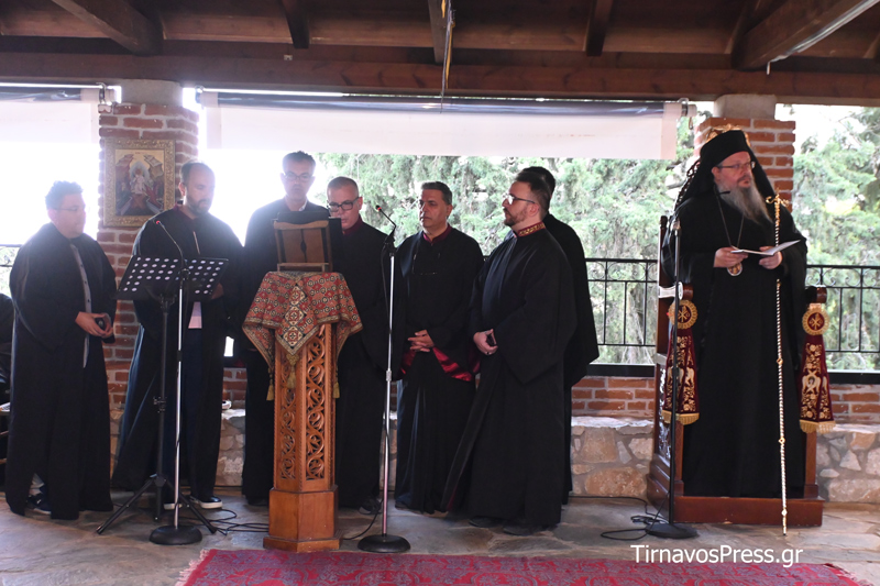 Στην ακολουθία χοροστάτησε ο Σεβασμιώτατος Μητροπολίτης Λαρίσης και Τυρνάβου κ.κ. Ιερώνυμος, πλαισιωμένος από τον ιερό κλήρο της Ιεράς Μητρόπολης και ιερείς της ευρύτερης περιοχής του Τυρνάβου. Πλήθος πιστών κατέκλυσε τον προαύλιο χώρο της ιστορικής Μονής του 16ου αιώνα, που βρίσκεται στο ομώνυμο άλσος πάνω από τον Τύρναβο.