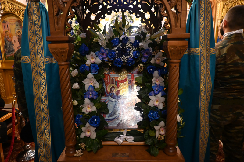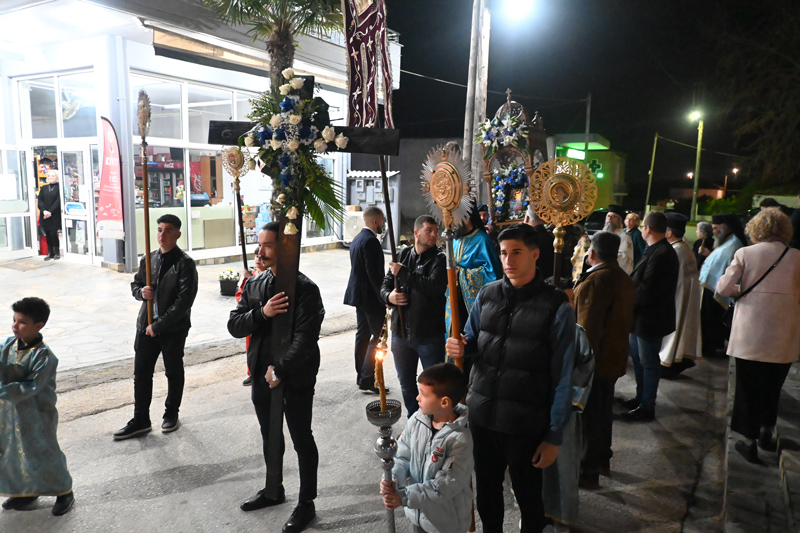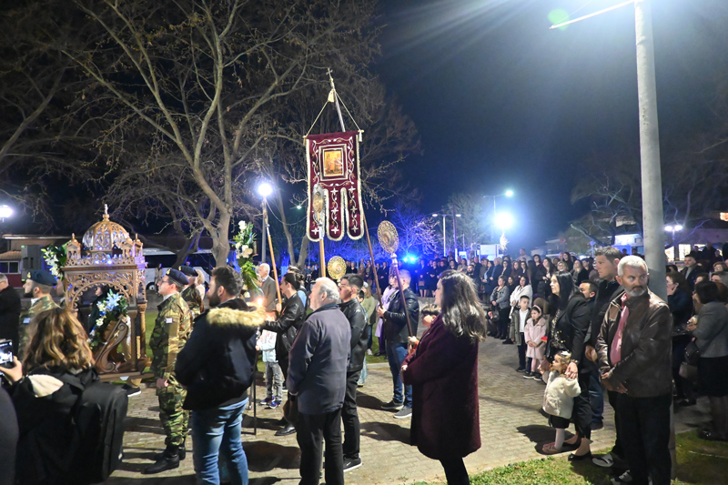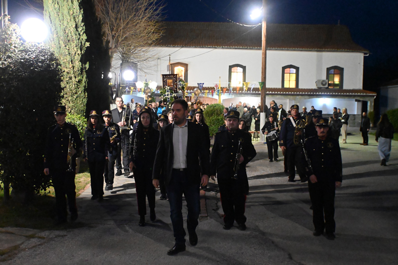 Μετά τον Εσπερινό, ακολούθησε λαμπρή Λιτάνευση της Ιερής Εικόνας στην πλατεία του χωριού. Την εικόνα μετέφεραν στους ώμους τους Έφεδροι Αξιωματικοί – μέλη του Συνδέσμου Εφέδρων Αξιωματικών Ν. Λάρισας – ενώ η Φιλαρμονική του Δήμου Τυρνάβου έδωσε εορταστικό τόνο στην πομπή, που ακολούθησε πλήθος πιστών.