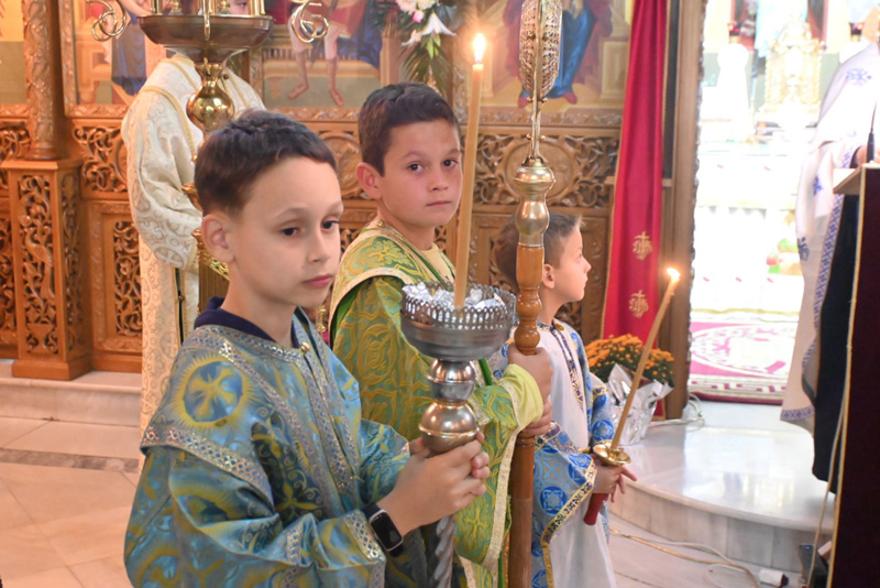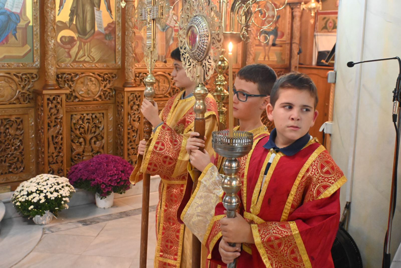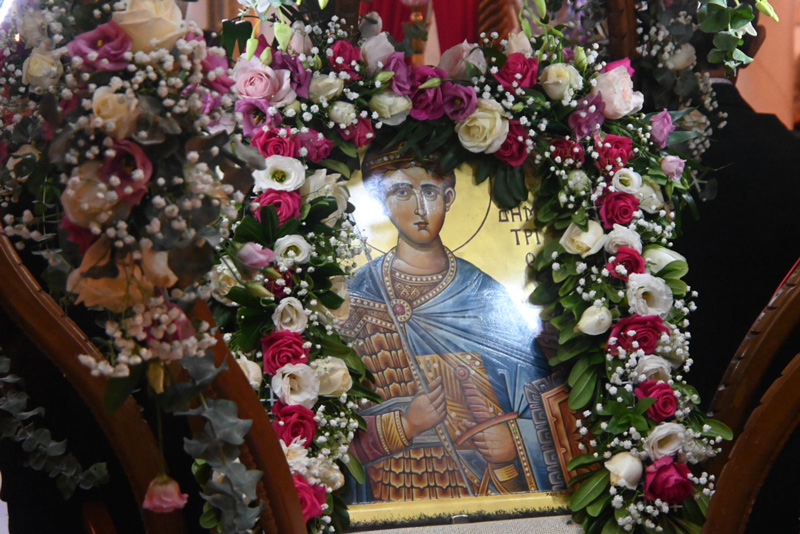 Πλήθος πιστών κατέκλυσε τον ναό και τον προαύλιο χώρο, συμμετέχοντας ευλαβικά στην Ακολουθία της Αρτοκλασίας και τιμώντας τον πολιούχο Άγιο. Η τελετή ολοκληρώθηκε με την ανάκρουση του Εθνικού Ύμνου, μέσα σε ένα συγκινητικό και εορταστικό κλίμα.