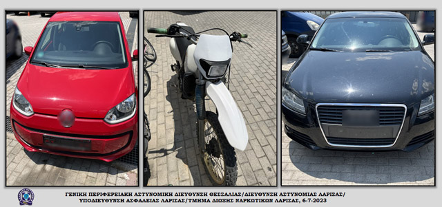 Κατόπιν των ανωτέρω, οργανώθηκε και υλοποιήθηκε συντονισμένη αστυνομική επιχείρηση, κατά την οποία εντοπίστηκαν οι τρεις συλληφθέντες, εκ των οποίων ο ένας αλλοδαπός προέβαλε αντίσταση κατά την ακινητοποίησή του, απωθώντας και κλωτσώντας τους αστυνομικούς, ενώ στην κατοχή τους και σε νομότυπες έρευνες που διενεργήθηκαν σε οικίες στην ευρύτερη περιοχή της Λάρισας, καθώς και σε κτηνοτροφική μονάδα σε περιοχή του Δήμου Τυρνάβου, βρέθηκαν συνολικά και κατασχέθηκαν: