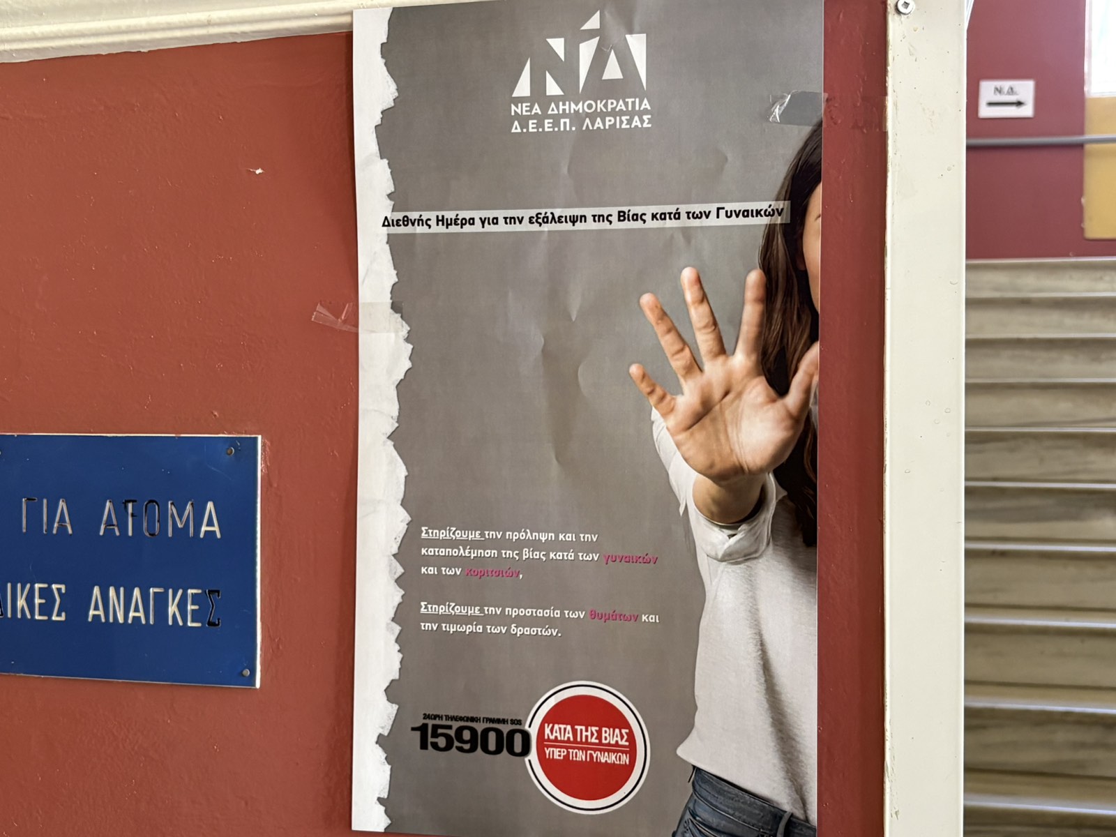 Παράλληλα, ως ΔΕΕΠ Λάρισας θα ήθελα να πω ότι επειδή την Τρίτη, 25 Νοεμβρίου παράλληλα με την εορτή της Αγίας Αικατερίνης, παγκοσμίως η ημέρα είναι αφιερωμένη στην καταπολέμηση της βίας κατά των γυναικών, έχουμε εκδώσει ψηφιακά και σε έντυπη μορφή αφίσα και συμμετέχουμε σ’ αυτή τη διεθνή εκδήλωση».