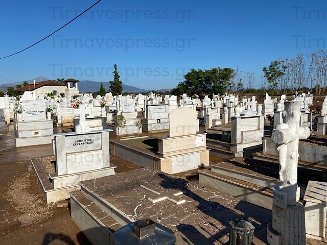 Πιο κάτω οι δρόμοι έχουν υποστεί καθίζηση ενώ φτάνοντας στην εκκλησία αντικρίζουμε την γκρεμισμένη ιστορική εκκλησία του Αγίου Νικολάου, όπως επίσης χαλασμένους τάφους αλλά και στεφάνια μέσα στα χωράφια.