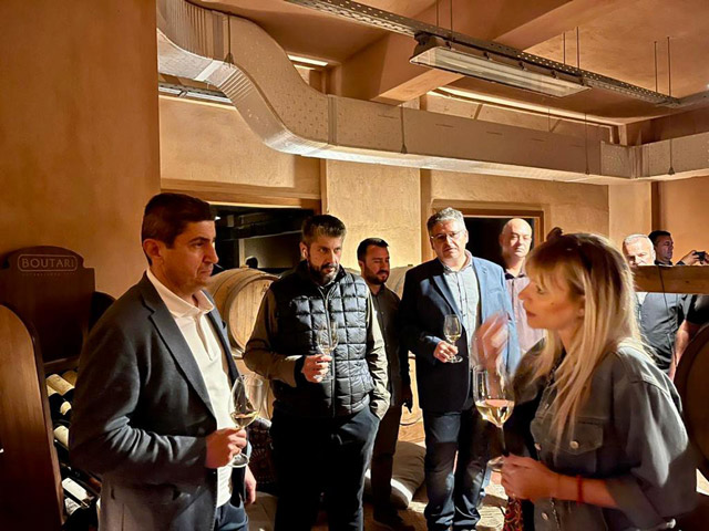 Με τους υπευθύνους της επιχείρησης Γιάννη και Νίκο Κωνσταντάκη, συζήτησε θέματα που αφορούν τον οινοτουρισμό, αλλά και την τέχνη της οινοποίησης.