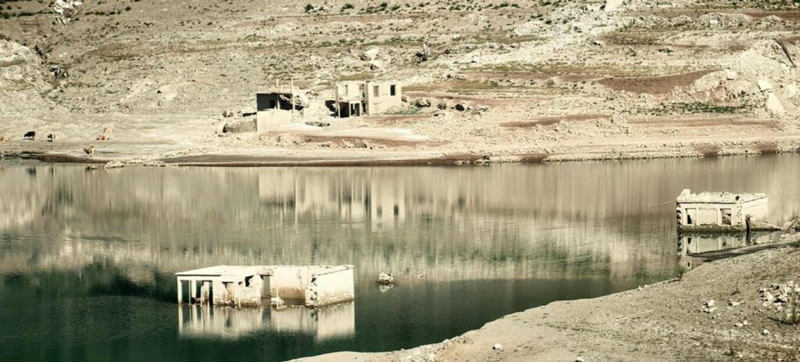 Λίμνη του Μόρνου: Πολύ χαμηλή στάθμη νερού, ξεπροβάλλουν σπίτια βυθισμένου οικισμού