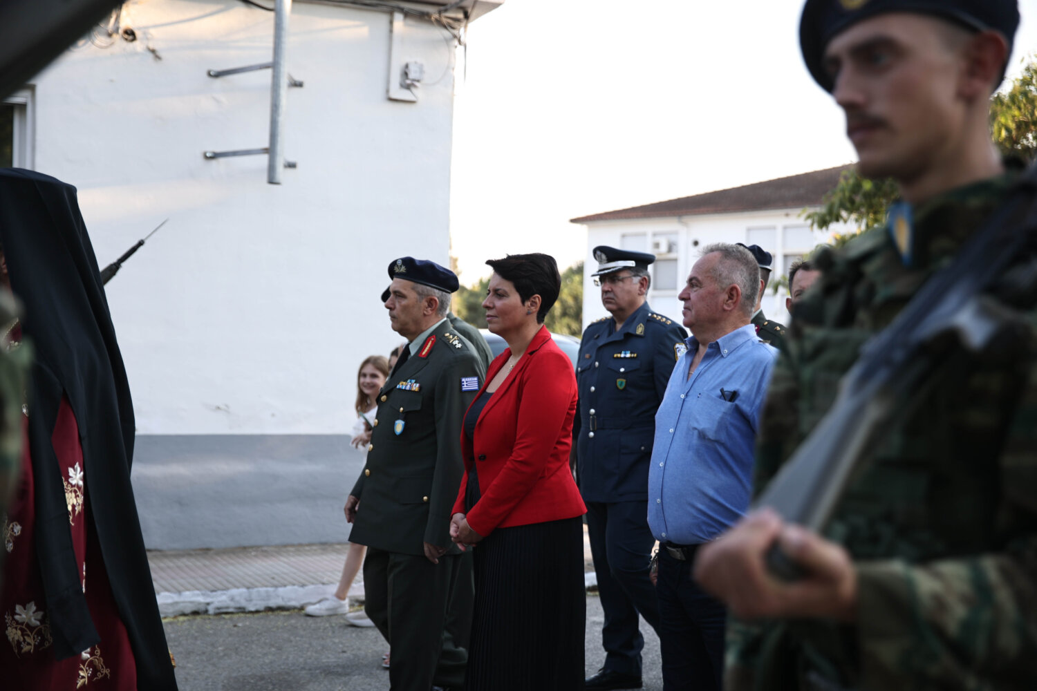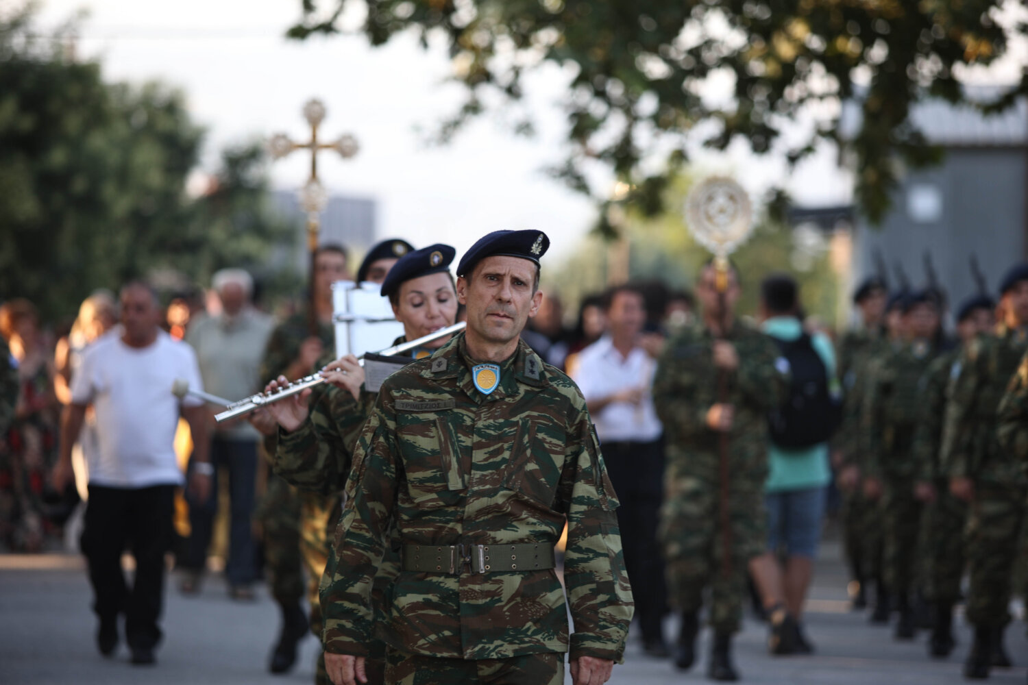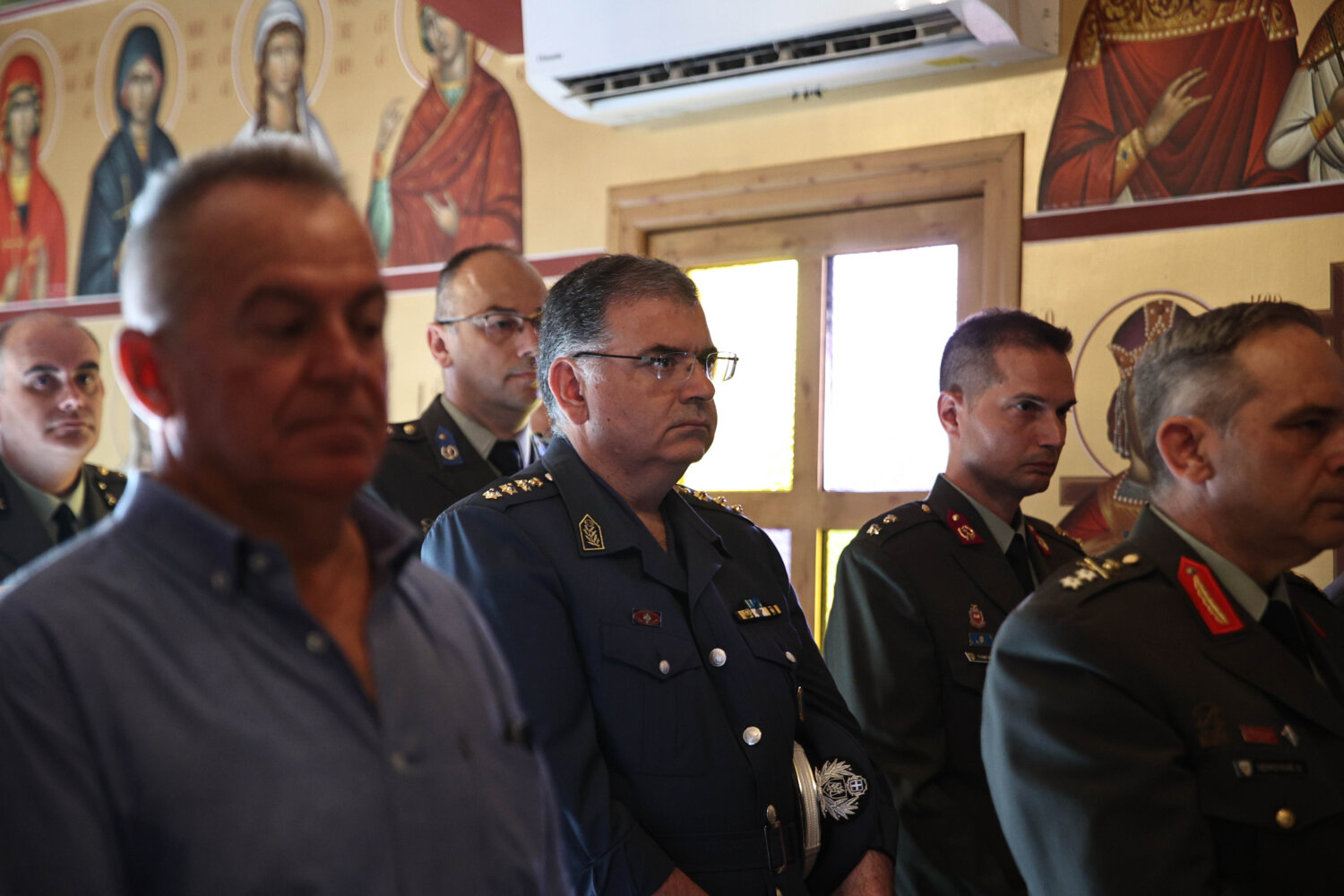 Κατά τη διάρκεια της σημερινής ημέρας τελέστηκε πανηγυρικός εσπερινός και ακολούθησε λιτάνευση της ιερής εικόνας εντός του στρατοπέδου, αρτοκλασία και θείο κήρυγμα.