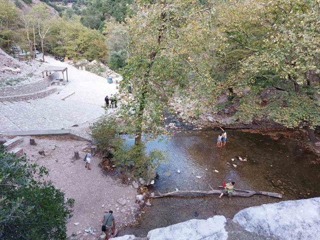 Από το πάνω μέρος υπάρχει δρομάκι που βγάζει πάνω στην τοξωτή γέφυρα. Ιδανικά επισκεφτείτε το μέρος φθινόπωρο καθώς τους καλοκαιρινούς μήνες δεν έχει αρκετό νερό για να τρέξει στον ψηλό καταρράκτη, όχι ότι αυτό μειώνει το υπέροχο τοπίο.