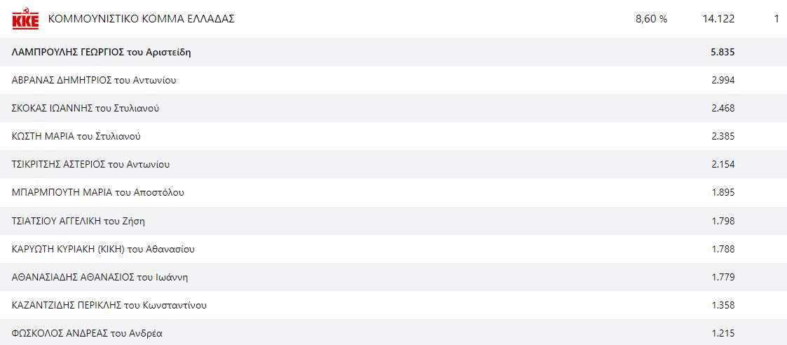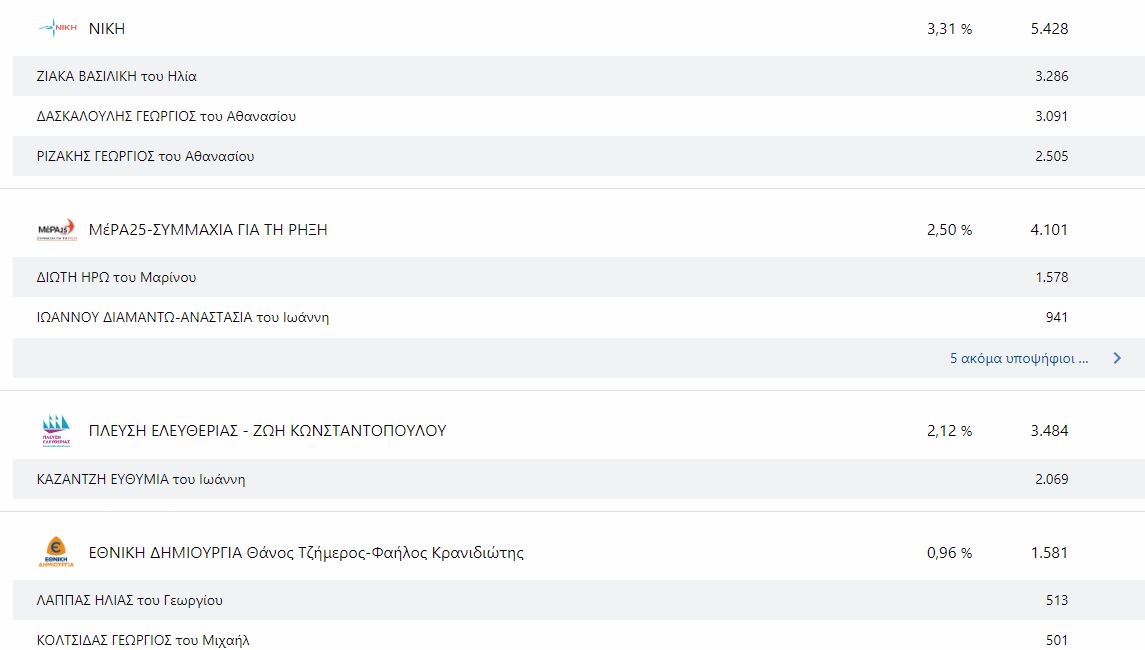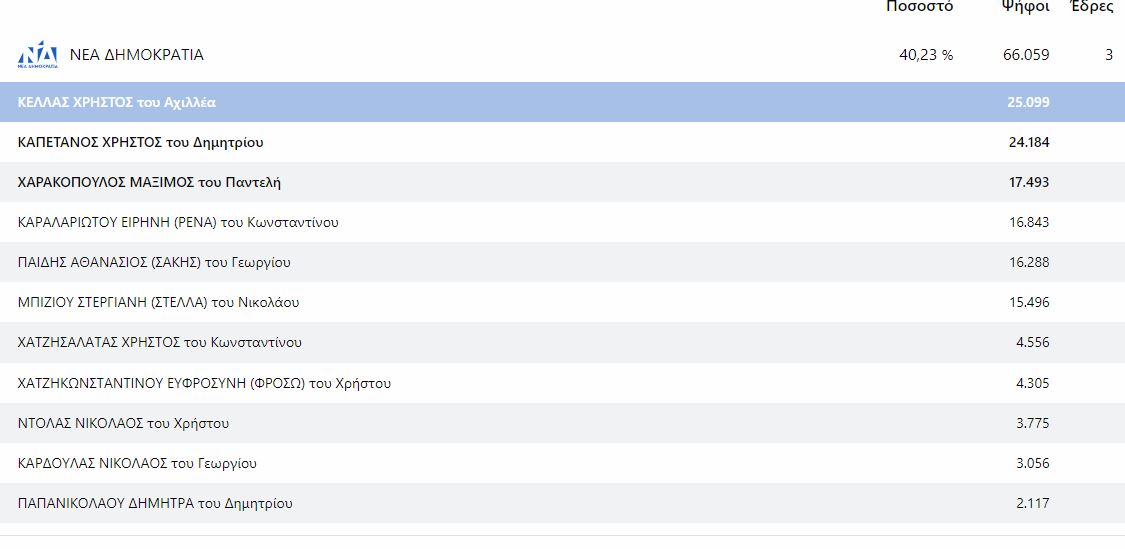 Αλλαγές στους σταυρούς στη Νέα Δημοκρατία με πρώτον τον Χρήστο Κέλλα, δεύτερος ο Χρήστος Καπετάνος και τρίτος Μάξιμος Χαρακόπουλος.