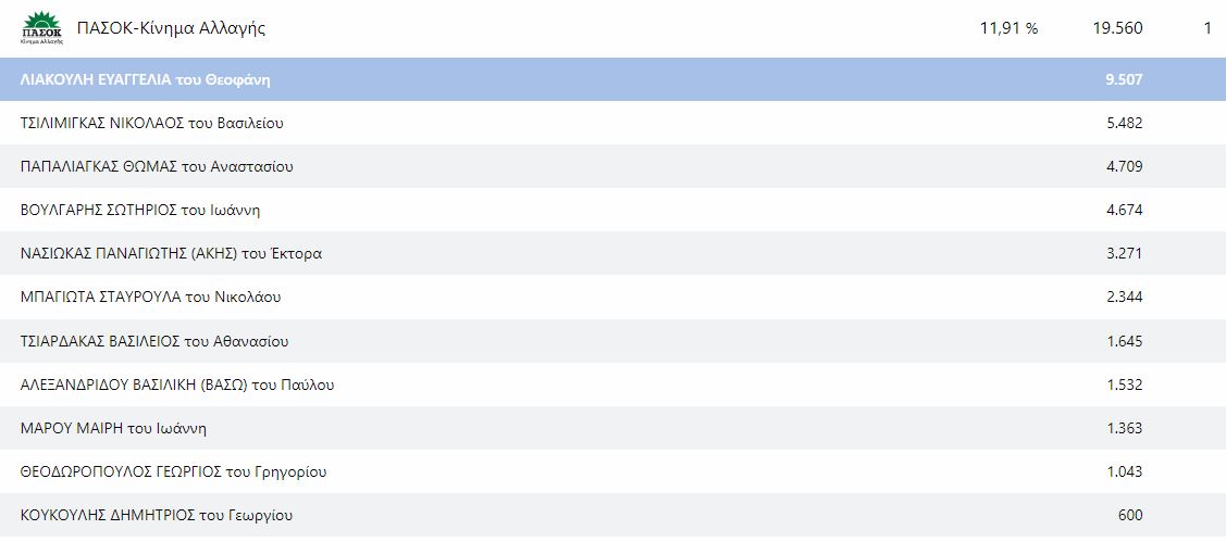Στο ΠΑΣΟΚ η Ευαγγελία Λιακούλη επανεξελέγη.