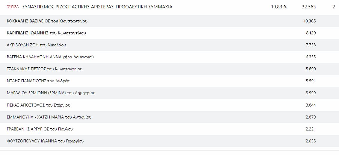 Στον ΣΥΡΙΖΑ ο Βασίλης Κόκκαλης πρώτος, δεύτερος ο Ελασσονίτης Γιάννης Καριπίδης.