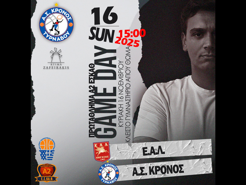 Ένα ακόμη απαιτητικό και κρίσιμο παιχνίδι περιμένει τον Α.Σ. Κρόνο Τυρνάβου, καθώς η ομάδα ταξιδεύει στη Λάρισα για να αντιμετωπίσει την Ε.Α.Λ., στο πλαίσιο της 5ης αγωνιστικής της Α2 ΕΣΚΑΘ. Ο αγώνας θα διεξαχθεί την Κυριακή 16 Νοεμβρίου, στις 15:00, στο Κλειστό Αγίου Θωμά.