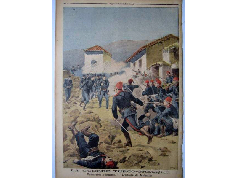 Έτσι, στη Μελουνα ,όπου διεξάγονταν ο κύριος αγώνας, τα ελληνικά στρατεύματα περικύκλωσαν τον Τουρκικό μεθοριακό σταθμό , κατέλαβαν το πέρασμα και δυο τάγματα έφτασαν κοντά στην Ελασσόνα. Στη γκραβούρα του 1897 απεικονιζεται σκηνή από τη Μάχη στη Μελουνα.