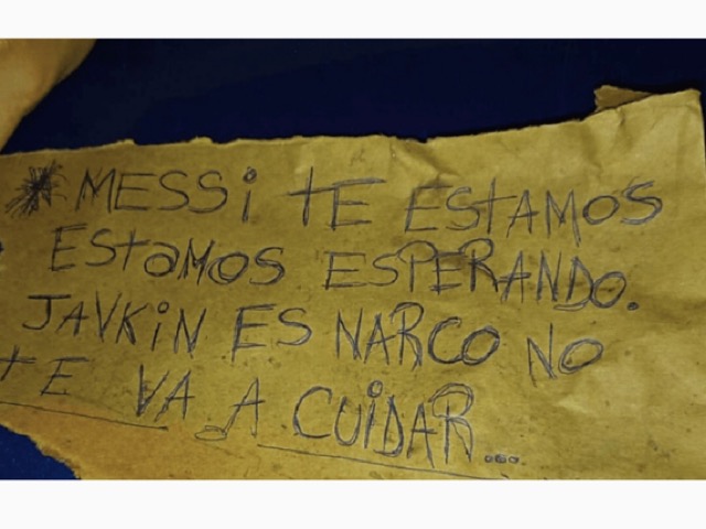 Ωστόσο το σημαντικότερο γεγονός της μαφιόζικης επίθεσης είναι ότι οι δράστες άφησαν κατά την αποχώρησης τους άφησαν ένα απειλητικό σημείωμα για τον Λιονέλ Μέσι γραμμένο σε ένα τσουβάλι με κάρβουνο.
