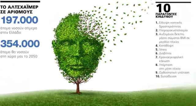 «Μερικοί από τους παράγοντες κινδύνου είναι: έλλειψη νοητικής δραστηριότητας, κατάθλιψη, στρες, διαβήτης, κρανιοεγκεφαλική κάκωση, υπέρταση στη µέση ηλικία, ορθοστατική υπόταση. Ακόµα υπάρχουν και µερικοί, λιγότεροι βέβαια, παράγοντες κινδύνου. Οπως παχυσαρκία στη µέση ηλικία, απώλεια βάρους σε µεγάλη ηλικία, έλλειψη σωµατικής άσκησης, κάπνισµα, κακή ποιότητα ύπνου, καρδιαγγειακή νόσος, κολπική µαρµαρυγή, έλλειψη βιταµίνης C».