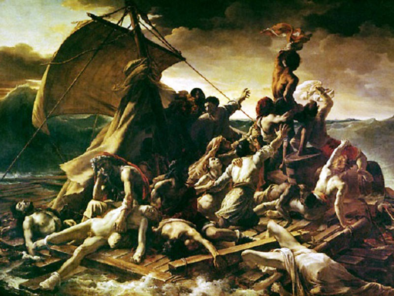 Η σχεδία ήταν παραδομένη στις καιρικές συνθήκες και έπλεε χωρίς προορισμό για 13 ολόκληρες ημέρες. Σε αυτό το χρονικό διάστημα διαδραματίστηκαν φριχτές σκηνές. Οι ναυαγοί δεν είχαν παρά ελάχιστες προμήθειες που τελείωσαν γρήγορα. Πολλοί από αυτούς δεν άντεξαν και πέθαναν από την πείνα, τη δίψα και τις κακουχίες. Οι υπόλοιποι μέσα στην απελπισία τους και την ανάγκη για επιβίωση αναγκάστηκαν να φάνε ορισμένα πτώματα τα οποία πρώτα ξέραιναν στον ήλιο.