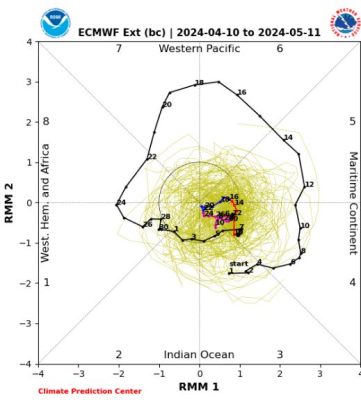 Σύμφωνα λοιπόν με τα προγνωστικά στοιχεία από το ευρωπαϊκό προγνωστικό μοντέλο καθώς και από την κίνηση του δείκτη MJO ο οποίος μας δίνει τα γενικά μοτίβα του καιρού ανά εβδομάδα για τις επόμενες 40 μέρες έχουμε να πούμε τα εξής: