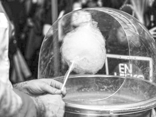 Oι γιγάντιες αυτές λευκές ή κι έγχρωμες μπάλες αποτελούνται κυρίως από αέρα κοπανιστό και ζάχαρη, ένα κουταλάκι κάθε μπάλα. Η πρώτη αυτόματη μηχανή κατασκευάστηκε το 1972.