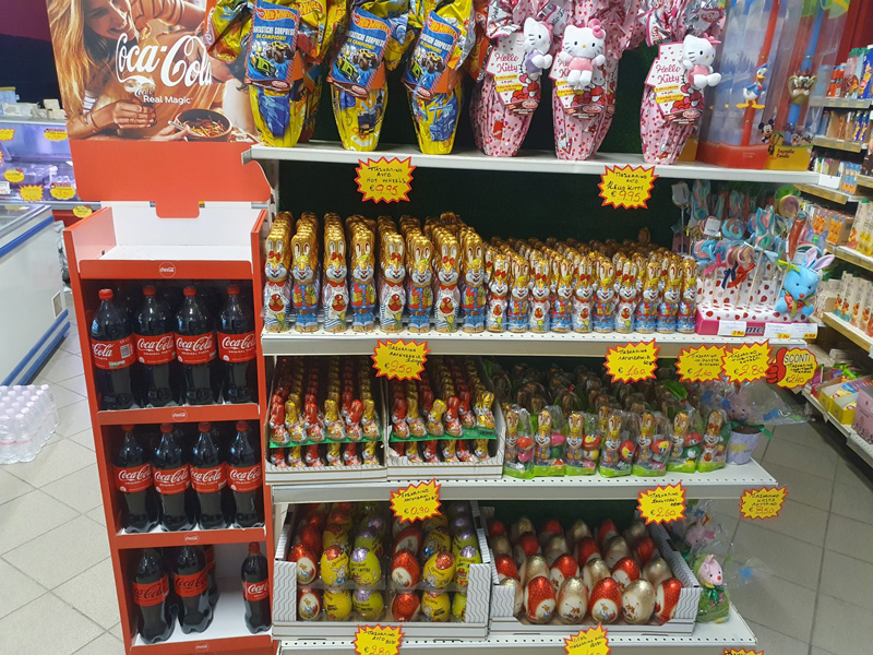 Και φυσικά φτάνοντας στην τελική ευθεία για το Πάσχα, δεν λείπουν τα πασχαλινά αυγά σοκολάτας σε μεγάλη ποικιλία, με πρωτότυπες δημιουργίες για να δώσετε χαρά στα παιδιά και τα βαφτιστήρια σας. Αλλά και για σας τσουρέκια νηστίσιμα και μη έρχονται φρέσκα για να απογειώσουν το τραπέζι σας.