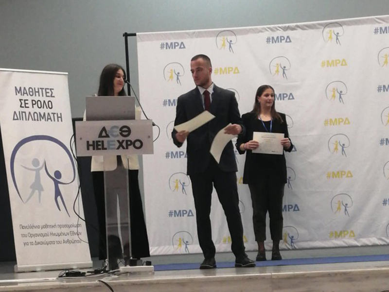Πιο συγκεκριμένα, ο μαθητής της Β’  τάξης Μπλάκος Νικόλαος απέσπασε 1ο βραβείο κι αναδείχτηκε ο καλύτερος εμπειρογνώμονας στην επιτροπή για την εξάλειψη των φυλετικών διακρίσεων, εκπροσωπώντας τη Βενεζουέλα, ο μαθητής της Β’τάξης, Μακαγιός Αθανάσιος απέσπασε εύφημο μνεία στο Συμβούλιο των δικαιωμάτων του ανθρώπου, εκπροσωπώντας τη Βουλγαρία,  η μαθήτρια της  Β’ τάξης,  Σαντίκη  Αικατερίνη, απέσπασε 1η εύφημο μνεία στην επιτροπή για το δικαίωμα στην υγεία με έμφαση στους εφήβους, εκπροσωπώντας την Αίγυπτο, ο μαθητής της Α’ τάξης, Ψαθάς Ιωάννης, απέσπασε 1η εύφημο μνεία στην επιτροπή για την προστασία της οικογένειας, εκπροσωπώντας τη Βουλγαρία, και η Νταβάρα Νικολέτα-Ηλιάνα, μαθήτρια της Α τάξης απέσπασε 1η εύφημο μνεία στην επιτροπή για το δικαίωμα των γυναικών και των κοριτσιών στην εκπαίδευση, εκπροσωπώντας την Βουλγαρία.