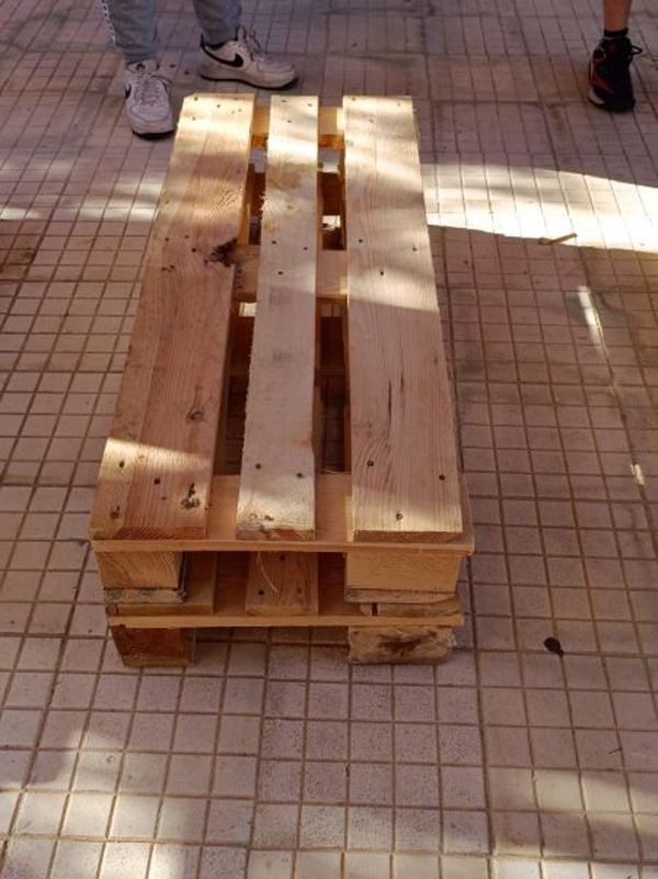 Με ιδιαίτερη έμπνευση και μεράκι, αξιοποίησαν τις ξύλινες παλέτες που χρησιμοποιήθηκαν για τη μεταφορά των σχολικών βιβλίων και τους έδωσαν… μια δεύτερη ζωή! Μέσα από ομαδική δουλειά και συνεργασία κατασκεύασαν ένα χειροποίητο τραπεζάκι και άνετα καναπεδάκια, τα οποία ήδη χρησιμοποιούν στα διαλείμματα για να απολαμβάνουν το κολατσιό τους, να χαλαρώνουν συζητώντας ή να παίζουν επιτραπέζια παιχνίδια.
