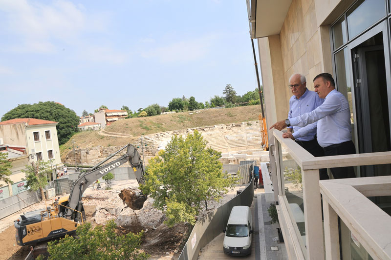 Μετά από τις συντονισμένες προσπάθειες, που έγιναν το προηγούμενο διάστημα, με την ολοκλήρωση των διαδικασιών για την εξαγορά του οικοδομικού τετραγώνου ΚΧ 867Γ, μέσω του «Πράσινου Ταμείου», έφτασε η στιγμή να υλοποιηθεί το πρώτο σκέλος της κατεδάφισης. Για να αναδειχθεί ο περιβάλλον χώρος και να μπορέσει το Αρχαίο Θέατρο να πάψει να “κρύβεται”, να είναι ορατό στους πολίτες και τους επισκέπτες.