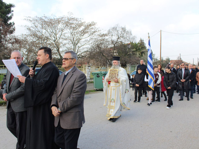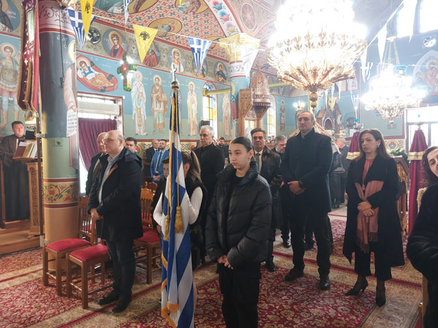Παρόντες στη Θεία Λειτουργία ο Δήμαρχος Τυρνάβου Γιάννης Κόκουρας, ο Περιφερειακός σύμβουλος κ Λαδόπουλος, ο πρόεδρος του τοπικού συμβουλίου κ Ρίζος Δημήτριος, ο επικεφαλής της δημοτικής παράταξης Η πόλη που θέλουμε Σάμερ Αθανάσιος Αμάρι και αντιπροσωπεία μαθητών του Δημοτικού σχολείου με την Ελληνική σημαία.