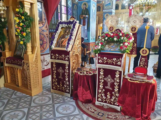Ο πανέμορφος Ιεράς Ναός ντυμένος στα γιορτινά του και οι πατέρες Τιμόθεος Δημήτριος και ο ιερέας του χωριού Χαράλαμπος τέλεσαν τον Όρθρο και την πανηγυρική Θεία Λειτουργία.