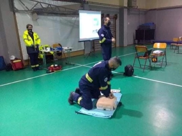 5. Στο βιωματικό σεμινάριο παροχής Α΄ Βοηθειών σε εκπαιδευτικούς, μαθητές και γονείς του 3ου & 24ου Δημοτικών Σχολείων Λάρισας στο γυμναστηρίου του 3ου ΔΣ Λάρισας και στο 48ο & 10ο νηπιαγωγεία Λάρισας, στο εξωτερικό χώρο του σχολείου, στις 12 04 Δεκεμβρίου 2021.