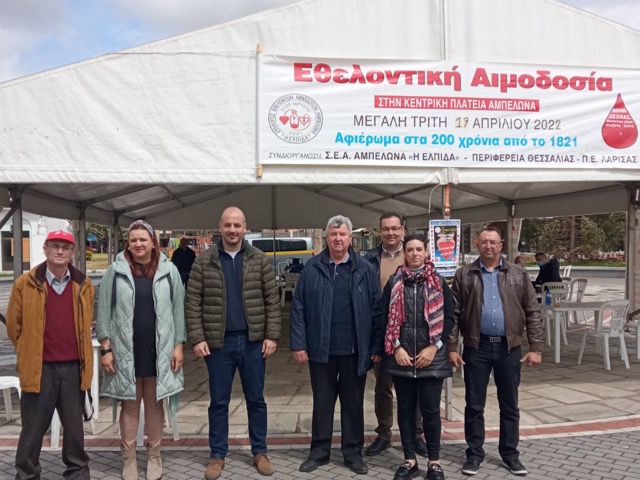 ΜΕ ΙΔΙΑΙΤΕΡΑ ΙΚΑΝΟΠΟΙΗΤΙΚΗ ΠΡΟΣΕΛΕΥΣΗ ΚΑΙ ΠΑΡΑ ΤΙΣ ΑΝΤΙΞΟΕΣ ΚΑΙΡΙΚΕΣ ΣΥΝΘΗΚΕΣ ΠΡΑΓΜΑΤΟΠΟΙΗΘΗΚΕ ΣΉΜΕΡΑ ΣΤΟΝ ΑΜΠΕΛΩΝΑ Η 96η ΑΙΜΟΣΟΣΙΑ ΠΟΥ ΣΥΝΔΙΟΡΓΑΝΩΣΑΝ Ο ΣΥΛΛΟΓΟΣ ΕΘΕΛΟΝΤΏΝ ΑΙΜΟΔΟΤΩΝ ΑΜΠΕΛΩΝΑ “Η ΕΛΠΙΔΑ” ΜΕ ΤΗΝ ΠΕΡΙΦΕΡΕΙΑ ΘΕΣΣΑΛΙΑΣ Π.Ε.ΛΑΡΙΣΑΣ ΣΤΕΛΝΟΝΤΑΣ ΕΤΣΙ ΗΧΗΡΟ ΜΗΝΥΜΑ ΑΓΑΠΗΣ ΑΝΘΡΩΠΙΑΣ ΚΑΙ ΑΛΛΗΛΕΓΓΥΗΣ