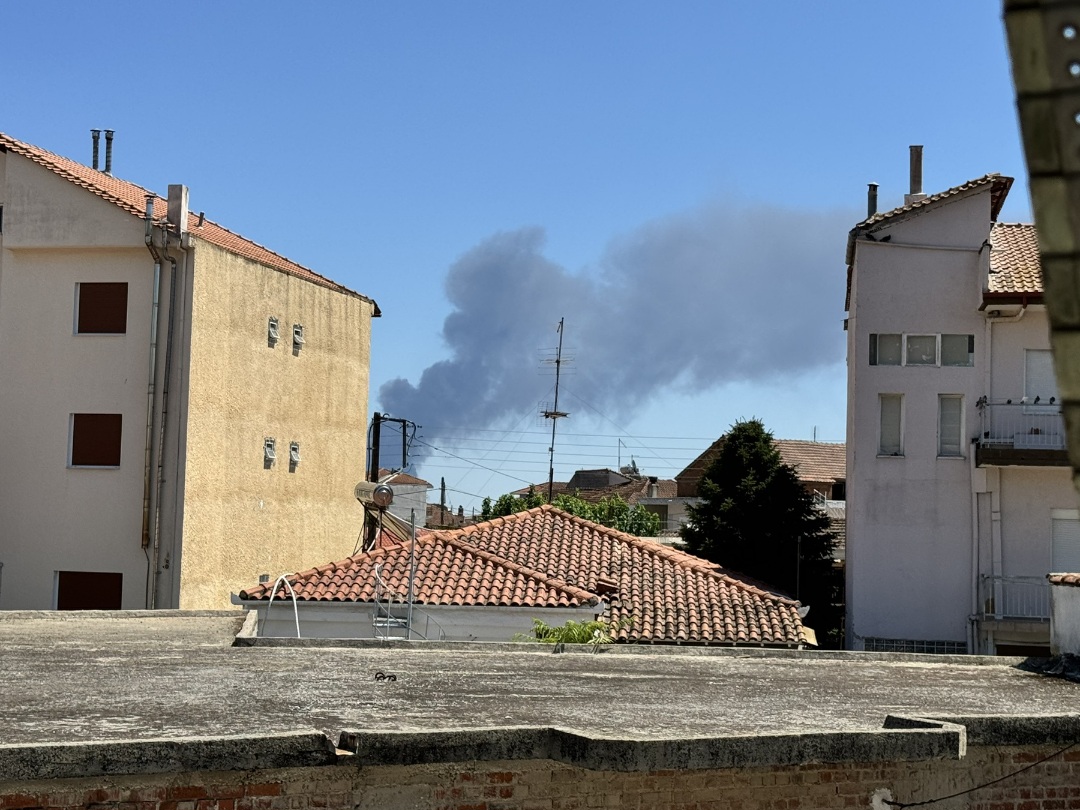Μεγάλη φωτιά έχει ξεσπάσει στον χώρο της ανακύκλωσης ελαστικών στον δρόμο Λάρισας Συκουρίου.
