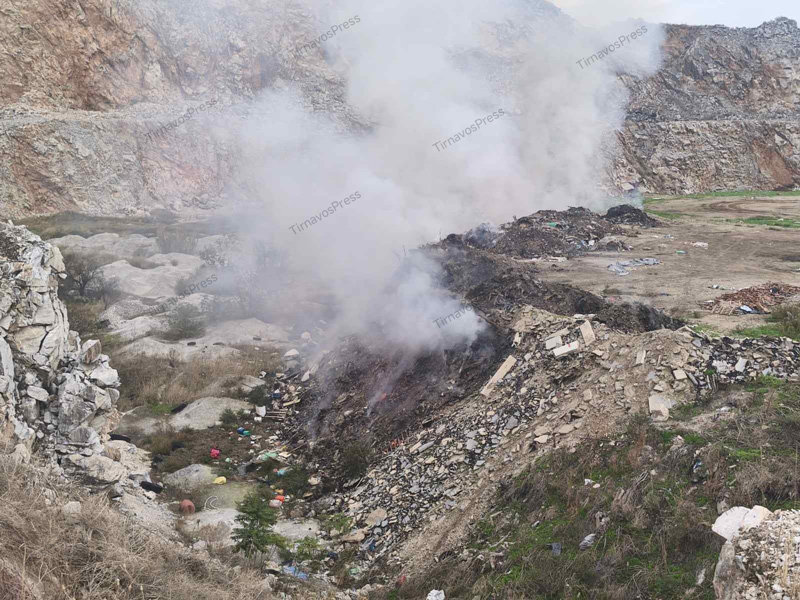Μέσα στην καρδιά του παλιού λατομείου Τυρνάβου καίει φωτιά, η οποία έχει προκαλέσει έντονη ανησυχία στους κατοίκους, καθώς ο πυκνός καπνός είναι ορατός μέχρι και το Αργυροπούλι, αλλά και από τη Λάρισα.