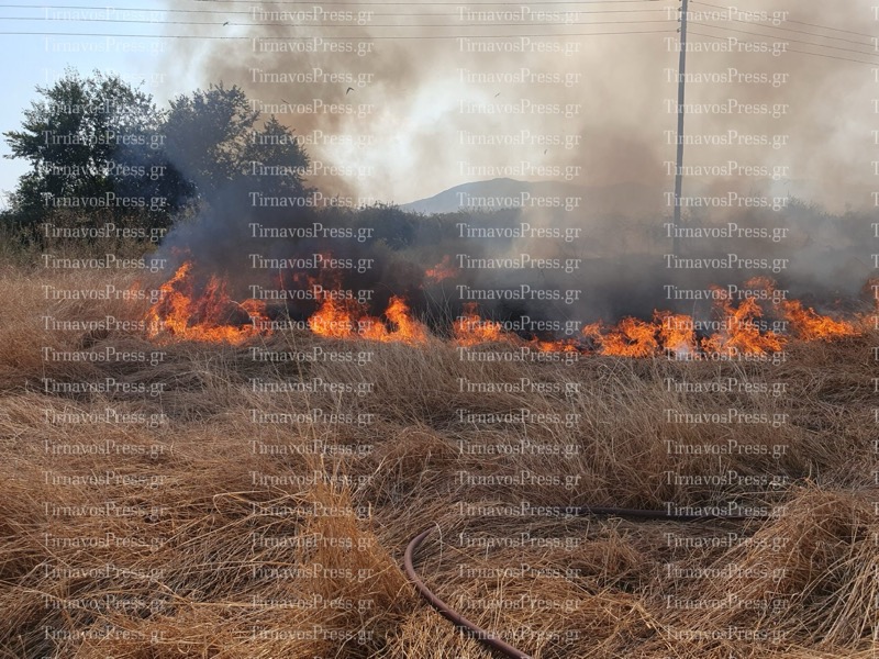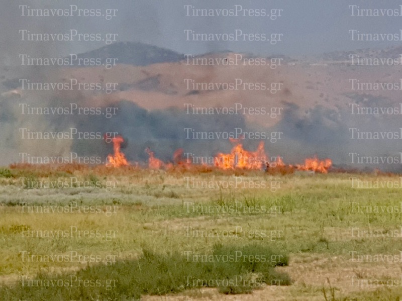 Στο σημείο έχει σπεύσει η υδροφόρα του Δήμου Τυρνάβου με 2 άτομα καθώς και 2 πυροσβεστικά οχήματα με 5 άντρες. Η φωτιά καίει υπολείμματα καλλιεργειών κοντά σε αποθήκες και κτηνοτροφικές μονάδες.