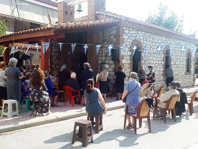 Με αρκετό κόσμο τηρώντας τα μέτρα προστασίας η λειτουργία έγινε στον εξωτερικό χώρο του ναού λόγω των μέτρων COVID-19 αλλά και για το λόγω πως και αυτή η εκκλησία παρουσιάζει δυστυχώς ρωγμές ύστερα από τον καταστροφικό σεισμό της 3ης Μαρτίου 2021.
