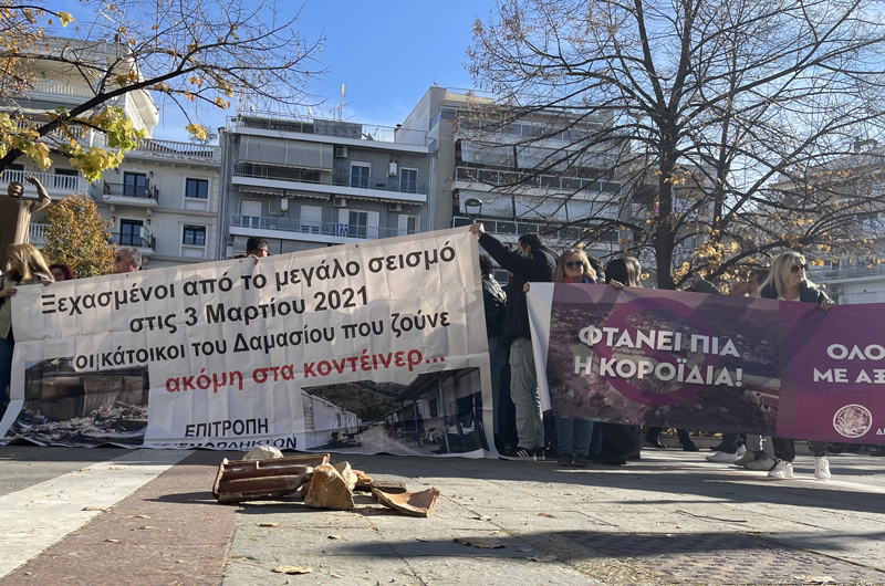 Ηχηρό έστειλαν χθες Τρίτη 26 Νοεμβρίου, δεκάδες σεισμοπαθείς από το Δήμο Τυρνάβου και τα χωριά της Ελασσόνας, που πλημμύρισαν την πλατεία Νομαρχίας στη Λάρισα, διαμαρτυρόμενοι για την εγκατάλειψη που νιώθουν, τρεισήμισι χρόνια μετά τους καταστροφικούς σεισμούς που έπληξαν την περιοχή.