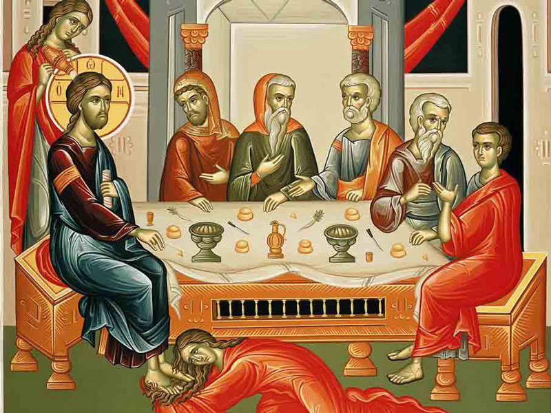 Η σημερινή μέρα η μεγάλη Τετάρτη είναι αφιερωμένη στην αμαρτωλή γυναίκα. Σύμφωνα με το ευαγγέλιο του Ιωάννη, ο Ιησούς ήταν καλεσμένος για φαγητό σε ένα σπίτι Φαρισαίων.