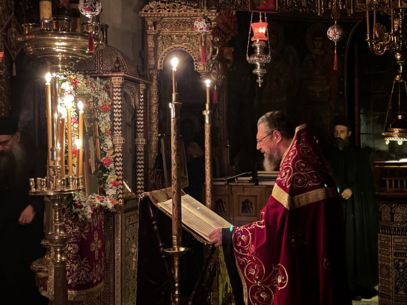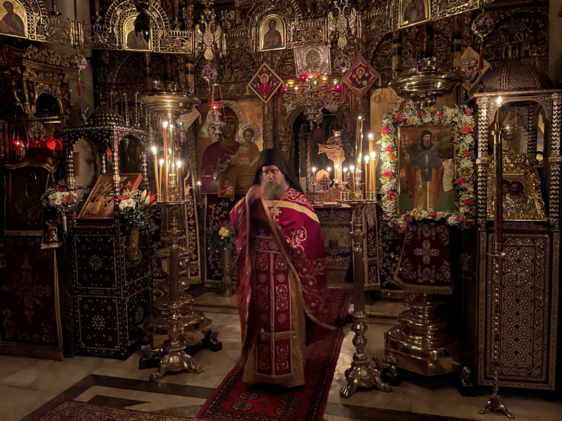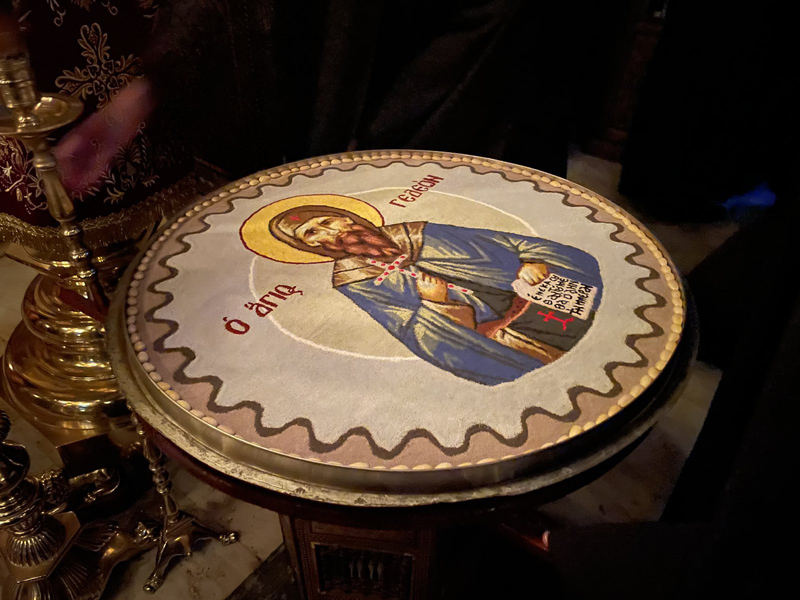 Την επομένη της εορτής του Αγίου, μετά την καθιερωμένη πρωινή ακολουθία στο Καθολικό της Μονής, τελέσθηκε αδεία και ευλογία του Ηγουμένου η Θεία Λειτουργία στο εντός των κτηρίων της Μονής παρεκκλήσιο του Αγίου Γεδεών.
