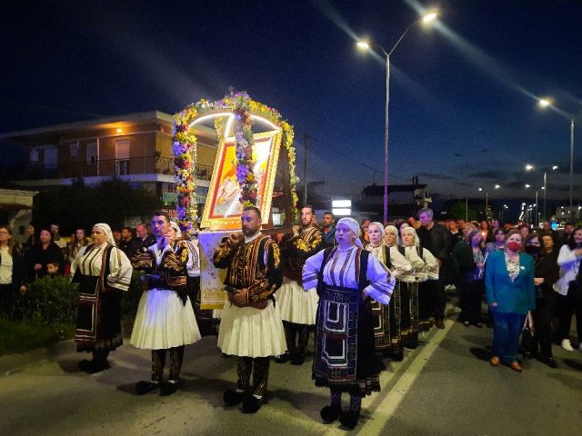 Μέλη του Συνδέσμου Σαρακατσαναίων Λάρισας στη λιτάνευση της Ιεράς Εικόνα του Αγίου Γεωργίου στη Γιάννουλη
