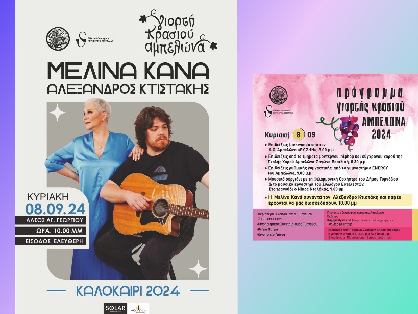Η Μελίνα Κανά, συναντά τον Αλέξανδρο Κτιστάκη και παρέα έρχονται να μας διασκεδάσουν στη Γιορτή Κρασιού Αμπελώνα