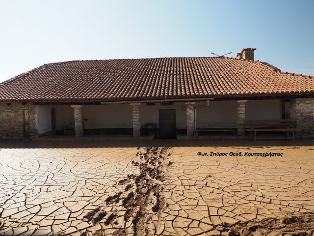 Οι πατημασιές πάνω στην λάσπη στον προαύλιο χώρο, πολλά μαρτυρούν, για την κατάσταση στο εσωτερικό του Ι. Ναού αρκετές ημέρες μετά την κακοκαιρία…