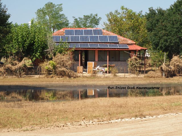 Σε σπίτι στο χωριό Αστρίτσα Καρδίτσας, μόνο τα φωτοβολταικά πάνελ έμειναν στην θέση τους, με αμφίβολη την μελλοντική τους λειτουργία.