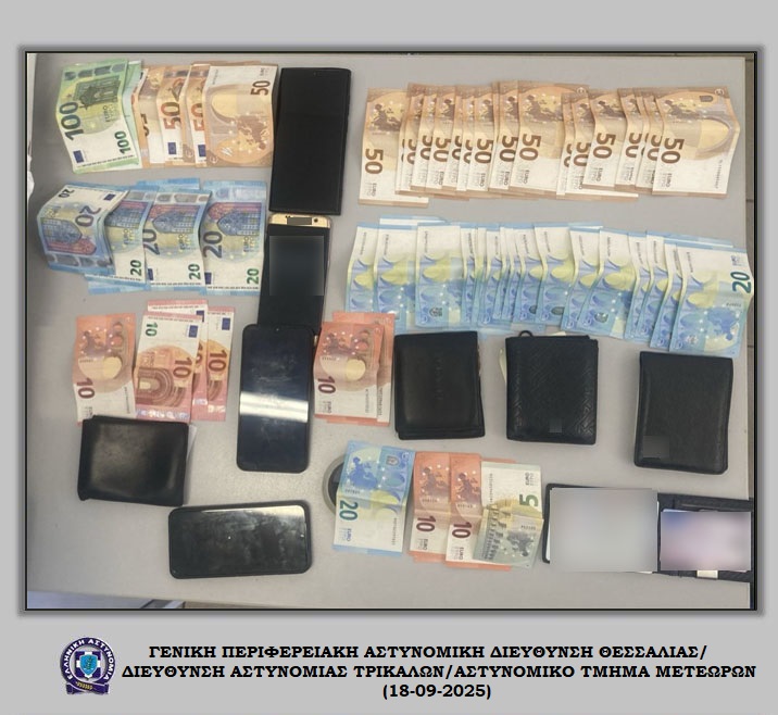 Ειδικότερα, όπως προέκυψε, προχθές (16-09-2025) το πρωί σε περιοχή του Δήμου Μετεώρων, οι -3- δράστες, με τη μέθοδο του τεχνητού συνωστισμού, αφαίρεσαν το πορτοφόλι άλλου αλλοδαπού, το οποίο περιείχε το χρηματικό ποσό των -200- ευρώ, τραπεζικές κάρτες και προσωπικά έγγραφα, ενώ ο τέταρτος δράστης είχε τον ρόλο του οδηγού Ι.Χ.Ε. αυτοκινήτου.