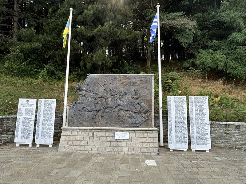 «Προς τιμή των αξιωματικών και οπλιτών του Ιππικού που έπεσαν στον πόλεμο του 1940. Νίκη της Ελληνικής Μεραρχίας Ιππικού κατά της Ιταλικής Μεραρχίας των Αλπινιστών. Σύνδεσμος Αποστράτων Αξιωματικών Ιππικού – Τεθωρακισμένων. Το Διοικητικό Συμβούλιο – Οκτώβριος 2012.