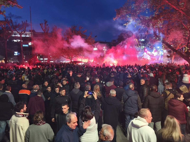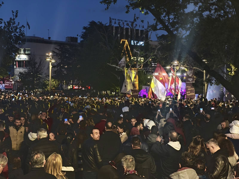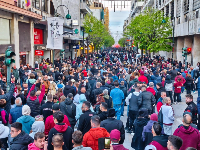 Η Λάρισα δε… κοιμήθηκε το βράδυ του Σαββάτου. Η καρδιά της πόλης χτυπούσε δυνατά στην κεντρική πλατεία, εκεί όπου χιλιάδες βυσσινί καρδιές χόρευαν στον ρυθμό του θριάμβου! Με το “αλογάκι” να καλπάζει ξανά προς τη Super League, ολόκληρη η πόλη μετατράπηκε σε μια ασταμάτητη γιορτή.