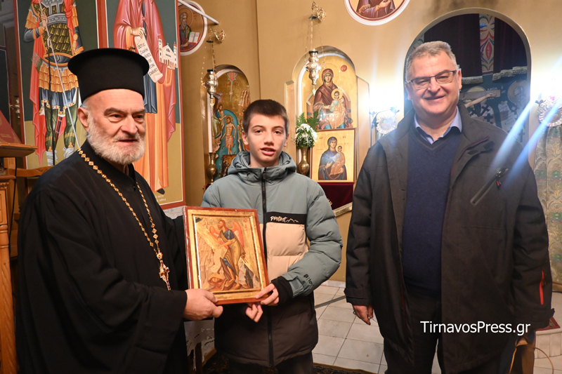 Ο Αρχιερατικός Επίτροπος Τυρνάβου, π. Γεώργιος, ευχήθηκε καλή χρονιά στους μαθητές της σχολής και στους γονείς τους. Το φλουρί της βασιλόπιτας έτυχε στον μικρό Ιωάννη, ο οποίος παρέλαβε ως δώρο μια ιερή εικόνα του Αγίου Ιωάννη.