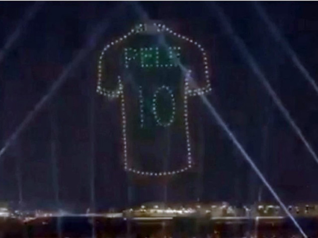 Έτσι, χρησιμοποίησαν… κάμποσα drones τα οποία σχημάτισαν στον ουρανό της Ντόχα τη φανέλα του Πελέ και το μήνυμα «Περαστικά Πελέ», την ίδια ώρα που αρκετά κτίρια της χώρας που διοργανώσει το Παγκόσμιο Κύπελλο φωταγωγήθηκαν με το πρόσωπο του Βραζιλιάνου θρύλου και τη σημαία της πατρίδας του.