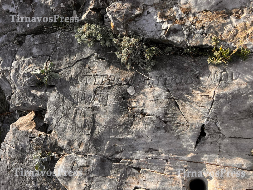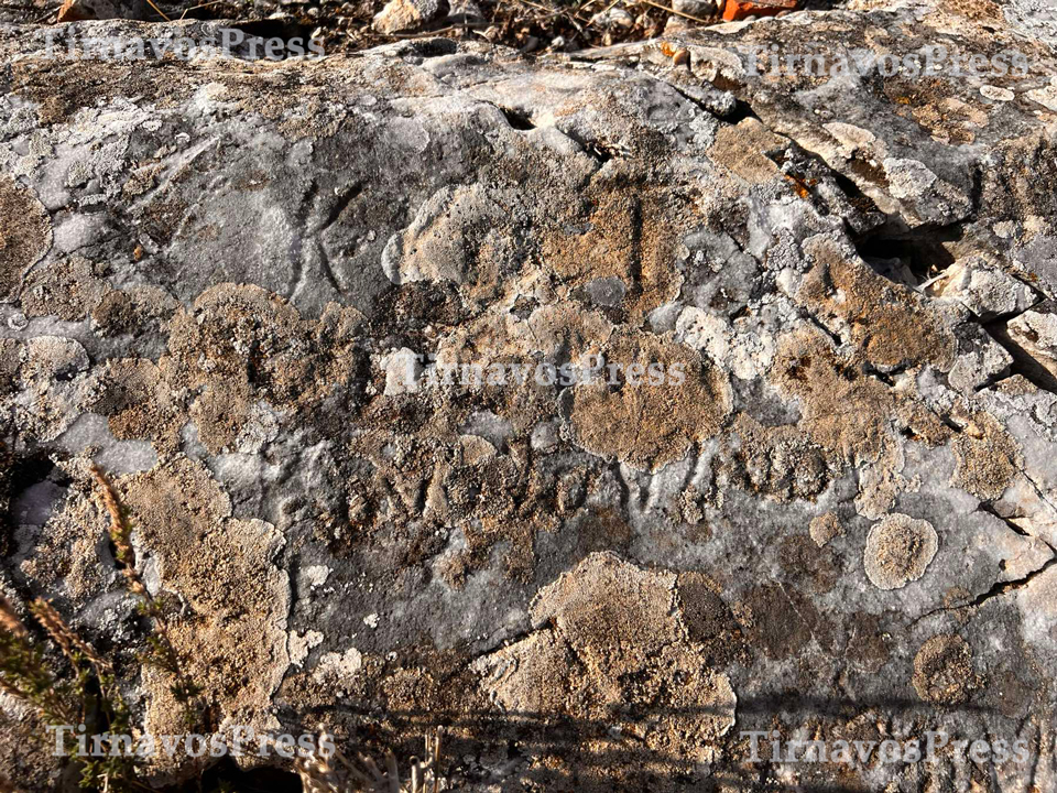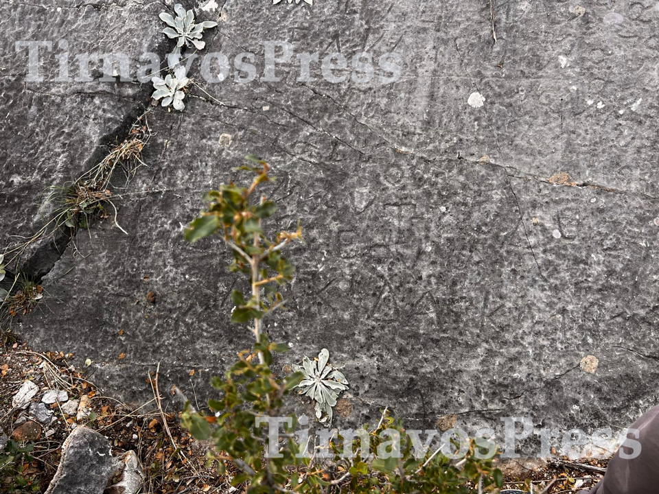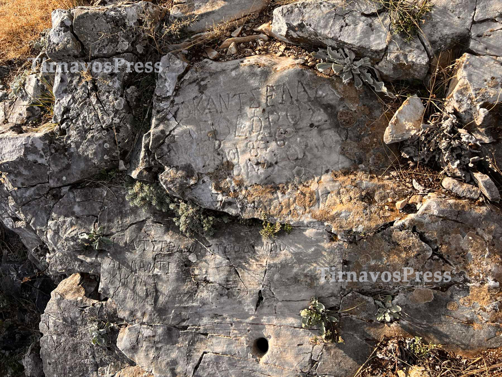 Εντοπίστηκαν πρόσφατα χαραγμένα σε βράχους στο Λουσφάκι Τυρνάβου μηνύματα – σημειώσεις Ελλήνων και Τούρκων στρατιωτών του Βαλκανικού Πολέμου.