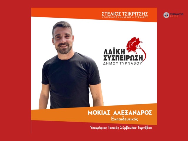 Αλέξανδρος Μόκιας, εκπαιδευτικός ΠΕ 70, υποψήφιος Τοπικός Σύμβουλος Τυρνάβου με τη Λαϊκή Συσπείρωση