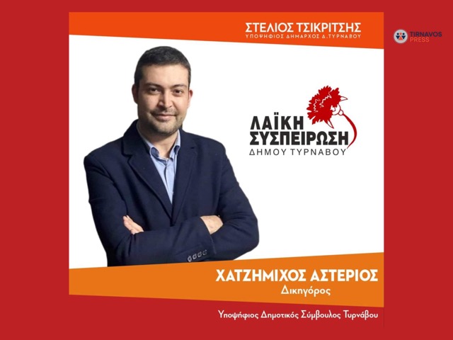 Αστέριος Χατζημίχος, δικηγόρος, υποψήφιος Δημοτικός Σύμβουλος Τυρνάβου με τη Λαϊκή Συσπείρωση