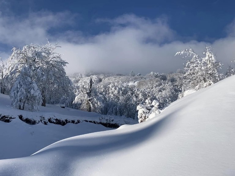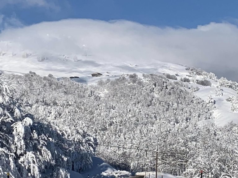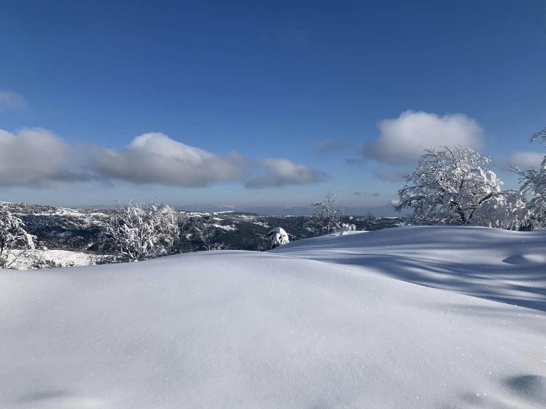 Η πρόσφατη χιονόπτωση έχει σκεπάσει το τοπίο με ένα παχύ λευκό πέπλο, μετατρέποντας την περιοχή σε έναν αληθινό χειμωνιάτικο παράδεισο.